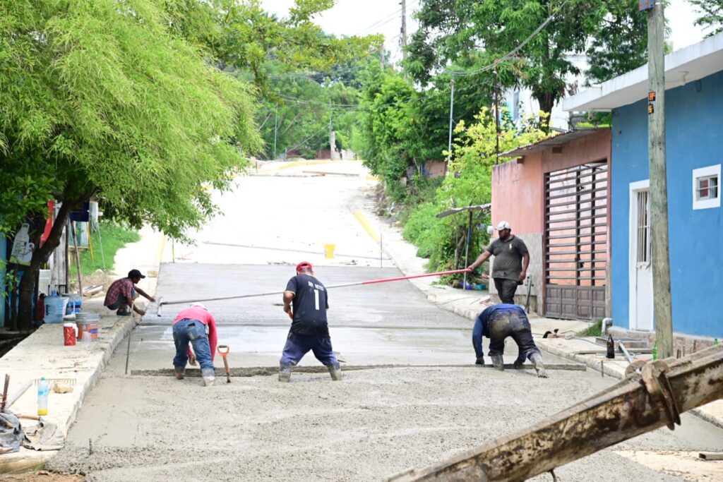 Nanchital, Ver. – Más de 90% de avance, es lo que lleva la ETAPA FINAL de la Obra de Construcción de la calle Roble, dentro de la colonia San Regino Plutarco.