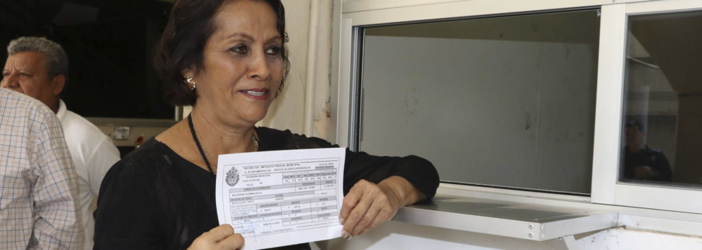 La alcaldesa de Nanchital, Dra. Zoila Balderas Guzmán realizó el pago de su predial acompañada de los ediles del Cabildo municipal, poniendo el ejemplo a los ciudadanos para que realicen su aportación para el beneficio del Municipio. “Invito a todos los habitantes de Nanchital a que vengan y participen porque gracias a lo que ustedes pagan podemos mejorar el esfuerzo que hacemos porque en Nanchital se puedan cubrir todas las necesidades que hacen falta” comentó la alcaldesa Dra. Zoila Balderas Guzmán. En esta ocasión se ofrece un descuento del 20 por ciento por pronto pago, así como del 50 por ciento a viudas, concubinas, pensionados, jubilados e INAPAM, esto último de acuerdo a su valor catastral, tal como lo marcan los artículos 118 y 221 del Código Hacendario Municipal en el Estado de Veracruz.
