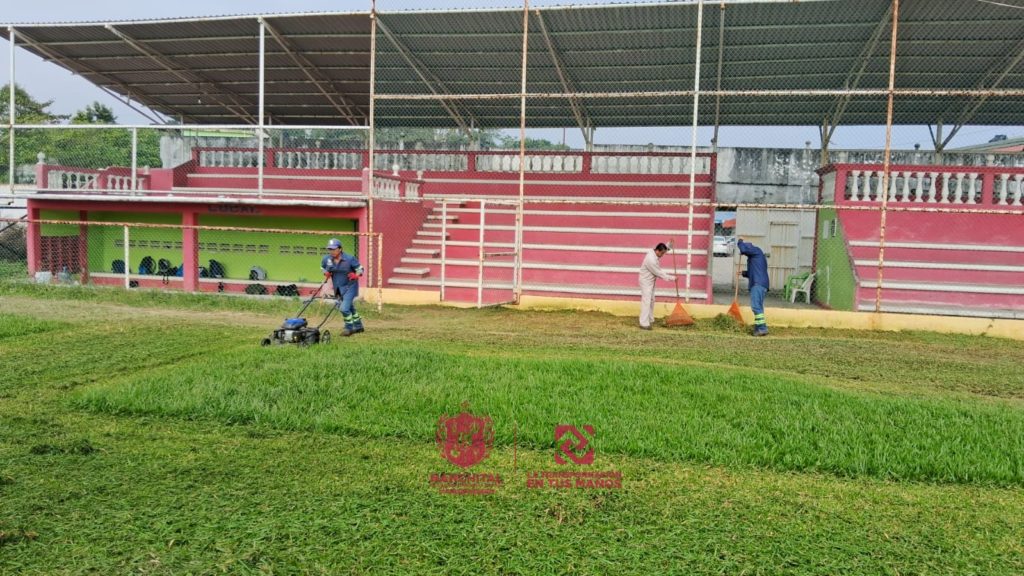 Nanchital, Ver. – Al iniciar el año y como parte de la programación de trabajo, personal del Comité Municipal del Deporte (COMUDE), perteneciente al Ayuntamiento, regresó a las instalaciones del Campo de Béisbol Francisco R. Gómez, para llevar a cabo actividades de limpieza y acondicionamiento, en beneficio de quienes lo utilizan.