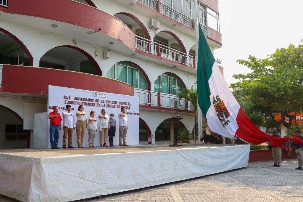 Nanchital, Ver. – Con una ceremonia cívica, esta mañana autoridades municipales y educativas, así como estudiantes de la Escuela Primaria Artículo 123, conmemoraron el CLXI Aniversario de la Batalla de Puebla, en el Parque Central Benito Juárez.