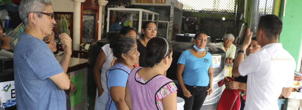 “Estamos brindando este apoyo a los prestadores de servicio además del mejoramiento de las instalaciones de este edificio con la limpieza y desazolve de los drenajes así como la fumigación para mantener el Mercado en mejores condiciones” informó Gustavo Bartolo Santiago, titular de Comercio.