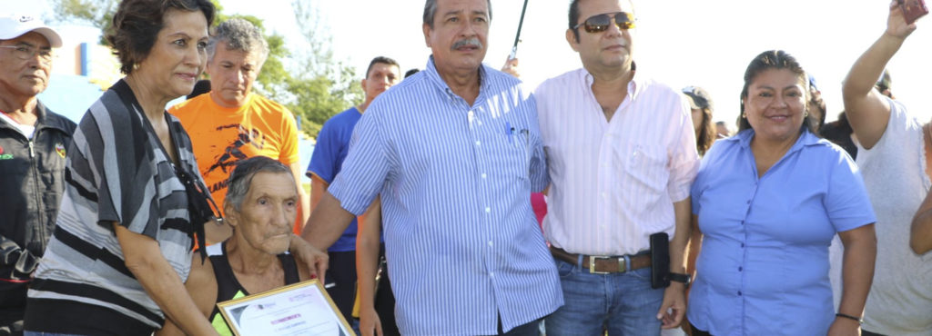 o hecha de arcilla, con la que quienes practican el atletismo, tendrán un lugar para practicar y así mejorar su preparación para representar a Nanchital en competencias regionales, estatales y nacionales. Para complementar las mejoras, se sembró pasto en la cancha de futbol y se mejoró el sistema de drenaje del terreno de juego, sumándose estas acciones a lo realizado anteriormente con la rehabilitación de los vestidores, los sanitarios y el estacionamiento. “Con esta acción fomentamos el deporte, teniendo la certeza que quienes vengan a practicar atletismo pondrán en alto el nombre de Nanchital, esta pista tiene características profesionales y cumple con otro compromiso de campaña, el de la rehabilitación integral del Estadio San Ernesto” En el evento se entregaron reconocimientos por trayectoria a atletas destacados del municipio como Pedro González Hernández, Julia Ramírez Ramírez, Isaúl Ortega Flores, Roque Garrido y José Luis Dorantes (póstumo), y se contó con la participación de los clubes de atletismo Paso Ligero y Albatros de Nanchital, así como agrupaciones de Coatzacoalcos y Minatitlán, quienes participaron en competencias de 60 (infantiles), 100, 400 y 3000 metros en categorías varonil y femenil.