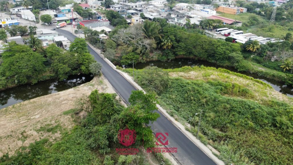 Nanchital, Ver. – La rehabilitación integral de la carretera Nanchital – Paso Nuevo, avanza en tiempo y forma. Hasta el momento, ya se ha revestido con concreto asfáltico del OXXO de la Noria hasta las inmediaciones del COBAEV 34.