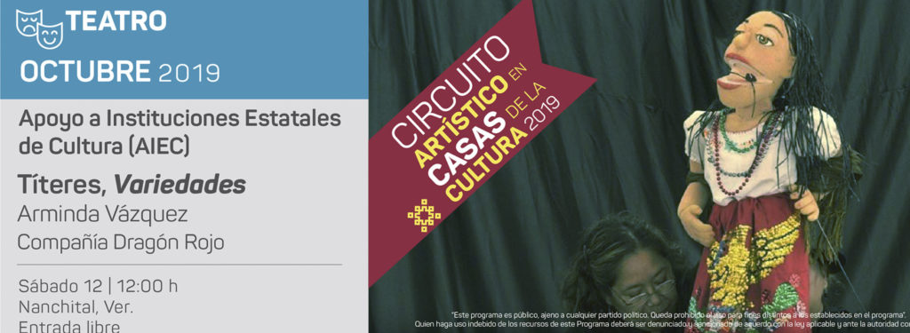 El próximo sábado 12 de Octubre a las 12:00 horas, los niños de Nanchital podrán disfrutar de la obra de títeres “Variedades” de la compañía Dragón Rojo, gracias a las gestiones del Gobierno Municipal que preside la Dra. Zoila Balderas Guzmán ante el Instituto Veracruzano de la Cultura. Esta obra traída desde el Puerto de Veracruz, se da gracias al Programa de Apoyo a las Instituciones Estatales de Cultura (AIEC) del Gobierno del Estado de Veracruz, la entrada es gratuita y podrán disfrutarla niños desde los 4 años de edad.