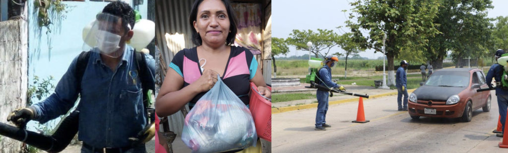 El Ayuntamiento que preside la Dra. Zoila Balderas Guzmán y el Sistema DIF Nanchital encabezado por el Dr. Oscar Miguel Piña Balderas, continúan realizando acciones para mitigar la posibilidad de contagio del Covid-19 y entregando apoyos a los afectados por la crisis económica. Desde el inicio de la pandemia, se han difundido las medidas de cuidado, los síntomas, los números de atención telefónica, y hecho hincapié en que la ciudadanía se quede en casa, a través de perifoneo, lonas, carteles, en los medios de comunicación y en redes sociales. Personal de ambas dependencias han entregado alimentos preparados así como despensas en los sectores más vulnerables del municipio, además de apoyos alimentarios a personas en sus domicilios, a taxistas, comerciantes, emprendedores, elementos de la Cruz Roja y a quienes lo han solicitado. Se ha brindado a los locatarios de los mercados gel antibacterial, así como a la gente que visita lugares públicos de kits de protección personal como guantes y cubrebocas. Se colocaron carpas de sanitización vehicular y en los mercados. Se han sanitizado las calles de toda la cabecera municipal, del ejido y congregaciones, así como espacios públicos que también fueron limpiados como los mercados, el parque y las oficinas del Palacio Municipal. Por último, se ha apoyado a los familiares que se han localizado con pacientes con covid-19, con materiales para realizar la sanitización en sus hogares, para con ello reducir la posibilidad de más contagios.