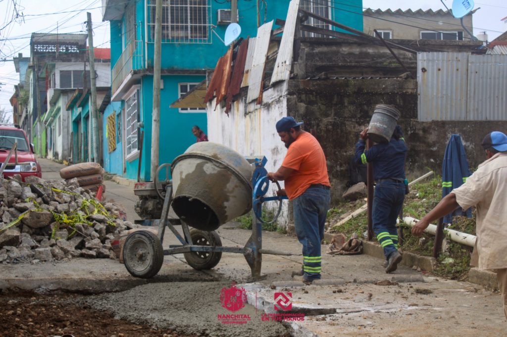 Nanchital, Ver. – En una jornada intensa, empleados de la Dirección de Servicios Municipales, pertenecientes al Ayuntamiento de Nanchital, llevaron a cabo los últimos trabajos de reparación de la calle Pino Suarez, en la colonia Campo Nuevo.