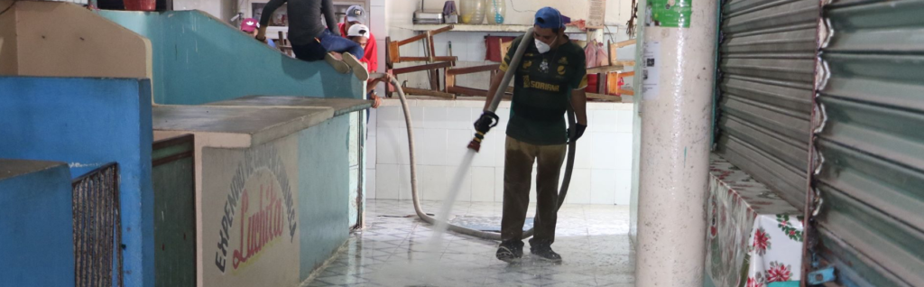 Como parte de las acciones contra la propagación del Coronavirus Covid-19, el Gobierno Municipal que preside la Dra. Zoila Balderas Guzmán llevó a cabo la limpieza y lavado del piso del mercado Francisco Balderas, en esfuerzo coordinado entre la Regiduría Segunda, Servicios Generales y Protección Civil.