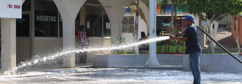 Como medida preventiva para evitar la propagación del Coronavirus Covid-19, el Gobierno Municipal que preside la Dra. Zoila Balderas Guzmán realizó limpieza del parque Benito Juárez, en esfuerzo coordinado entre Servicios Generales y Protección Civil.