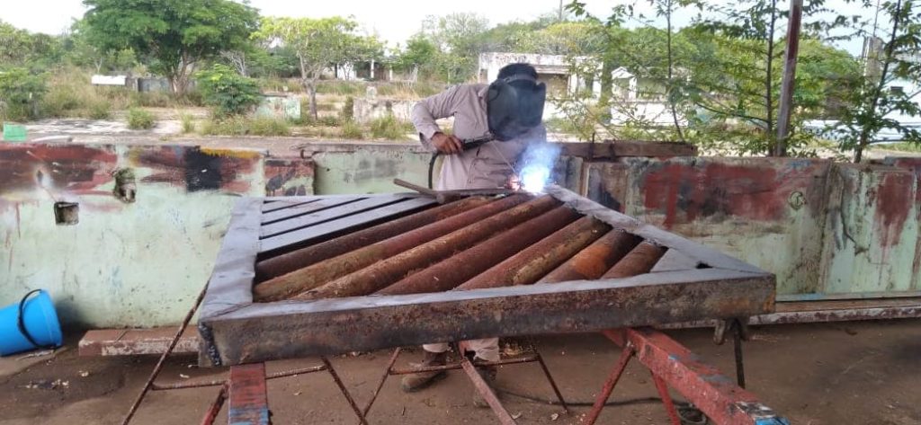 Nanchital, Ver. – De manera paulatina, personal de la Dirección de Servicios Municipales trabaja en la elaboración y reemplazo de tapas, así como parrillas de registro metálicas y de concreto, mismas que ayudan tanto de la zona urbana como rural del municipio