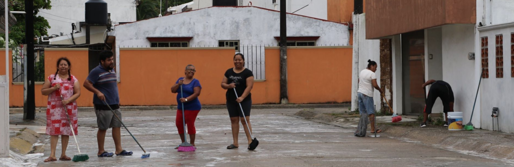 Apoyando una iniciativa ciudadana, el Gobierno Municipal que preside la Dra, Zoila Balderas Guzmán, brindó su respaldo a los vecinos de la calle San Félix Manzana 19 de la colonia San Miguel Arcángel, quienes realizaron la limpieza de sus banquetas y frentes para evitar la propagación del coronavirus covid-19.