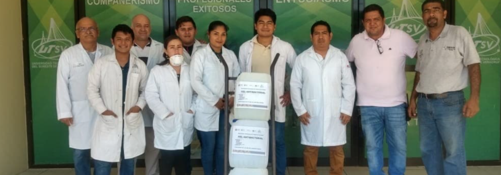 Como apoyo para evitar la proliferación del Coronavirus Covid-19, el Gobierno de Nanchital que preside la Dra. Zoila Balderas Guzmán, recibió 60 litros de gel antibacterial realizado por alumnos de la Universidad Tecnológica del Sureste de Veracruz, gracias a la intervención del rector Metro. Julio César Sandría Reynoso y del Ing. Hilario Fernández Martínez director de la carrera de Ingeniería. En esta labor participaron los maestros Ángel Antonio Espejel, Omar Martínez Jiménez y Ángel Lagunes Sánchez, así como los estudiantes Kenia Joseline Martínez de los Santos, Lizbeth Socorro Tobón Cabrera, Isaac Aguilar Esteban, Jaír Alejandro Ramírez Vàzquez, Eduardo Andrés Carrillo Raymundo y Pablo César Medina Bautista.